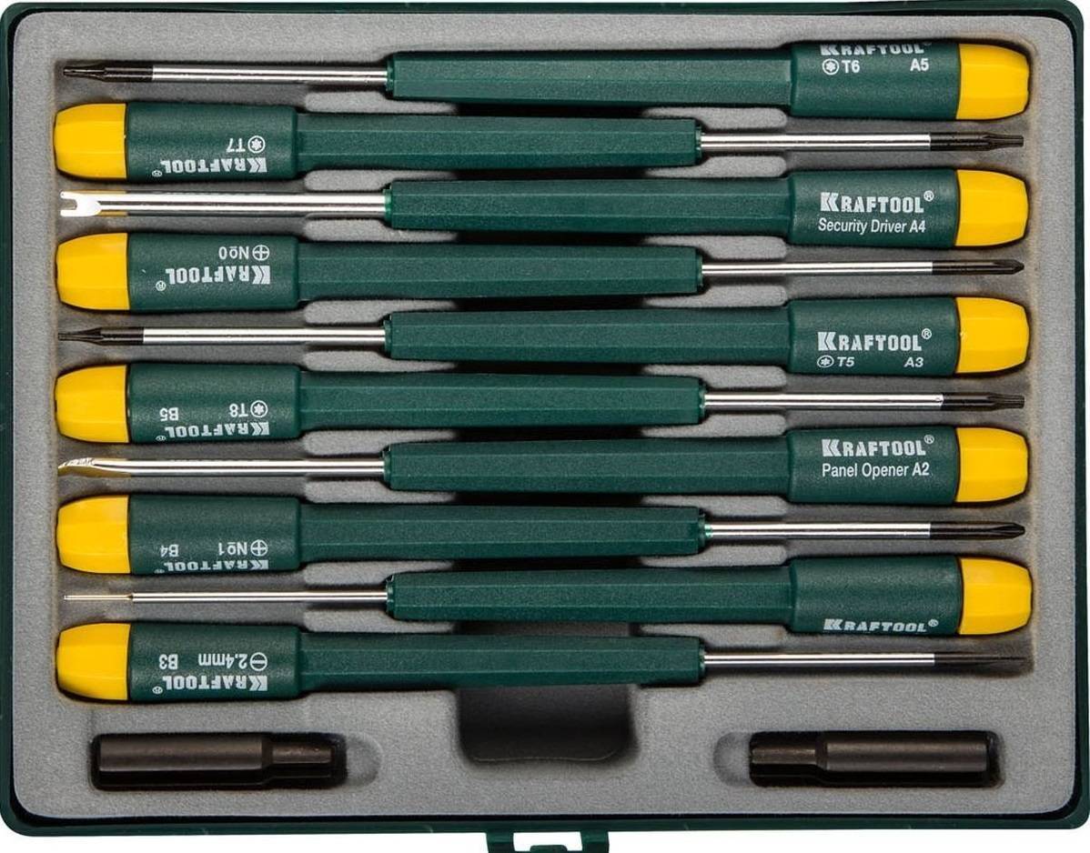 В комплектацию Кратон входит более 100 наконечников. Среди них шлицевые, шестигранные, гаечные и другие насадки для решения широкого круга задач.