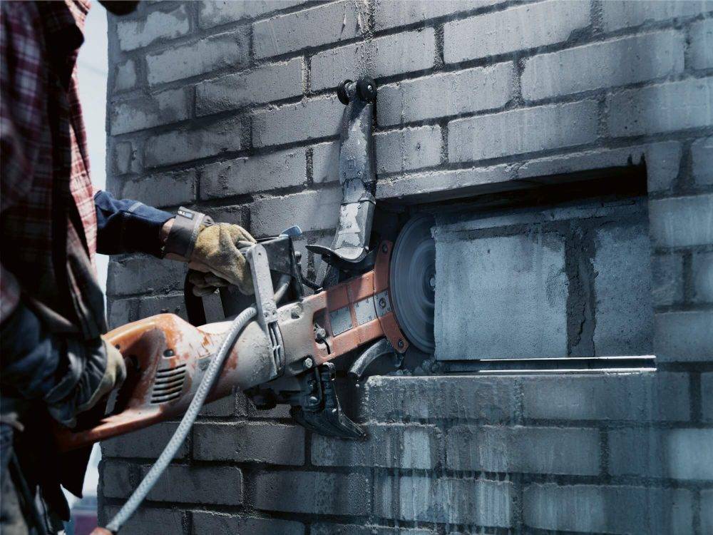 - машины для резки стен. Это распространенное среди профессионалов устройство, позволяющее быстро обработать каменный, железобетонный, а также кирпичный массив толщиной до 73 см. Оборудование включает приводной мотор, металлические направляющие, абразивный диск, гидростанцию и блок управления. Направляющие полозья крепятся горизонтально или вертикально, обеспечивая предельно точное перемещение приводной станции с режущим диском в необходимом направлении;