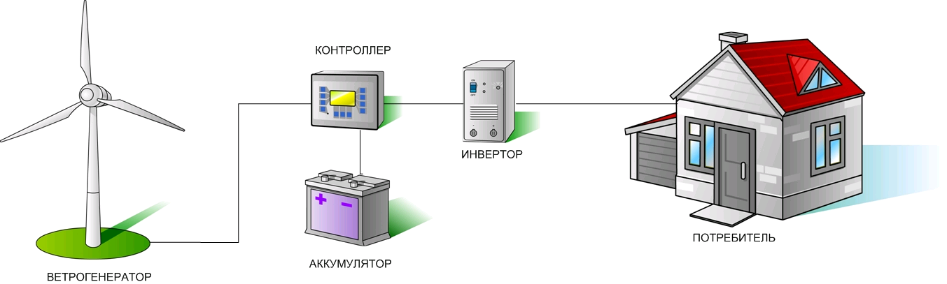 В состав ветрогенератора входят:
