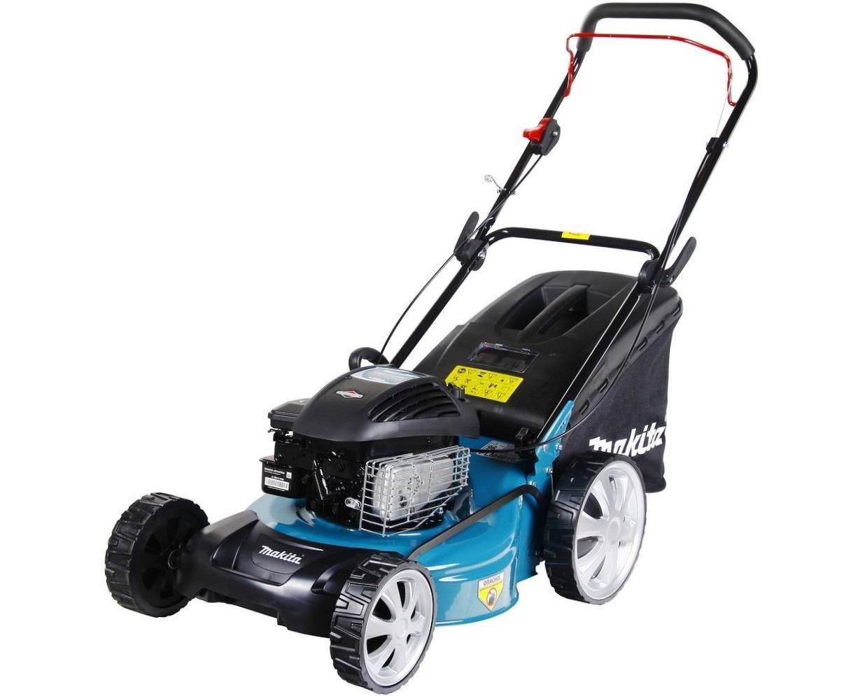 | Makita PLM4618 Лучшие отзывы среди недорогих бензиновых моделей получила эта японская заднеприводная самоходная газонокосилка. Силовая установка: 4-тактный бензиновый мотор, мощностью 2,7 л. с. Функционал: мульчирование, регулировка высоты среза травы, мягкий травосборник. Масса — 32 кг. Достоинства: