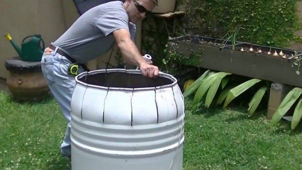 Люк крепят к стенке бочки шарнирами, обычно используют карточные петли (неразборные). Для герметизации края загрузочного отверстия оклеивают кусками мягкой резины. Берут полоски толщиной около 8 мм. Для фиксации люка в рабочем состоянии используют специальные карабинные защелки, или прикрепляют на стенку и крышку 2 уголка с высверленными отверстиями для стяжных болтов.