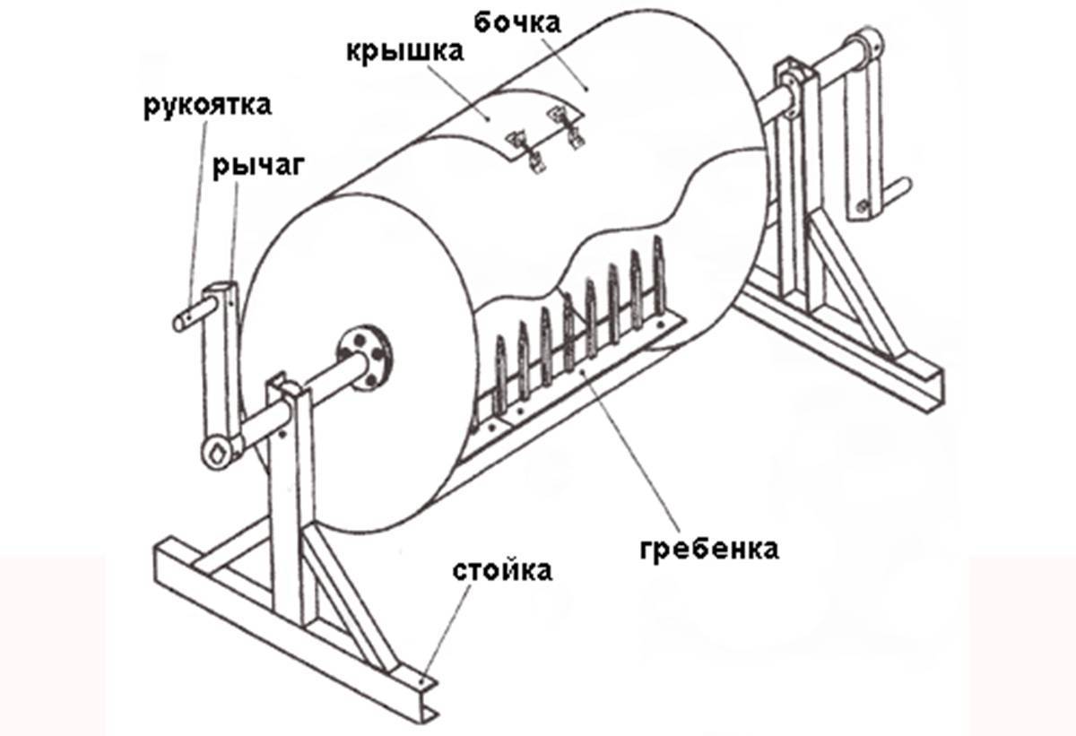 Подготовку смесительного резервуара. В качестве емкости можно использовать бочку, молочный бидон или корпус стиралки. Внутри необходимо закрепить лопасти.