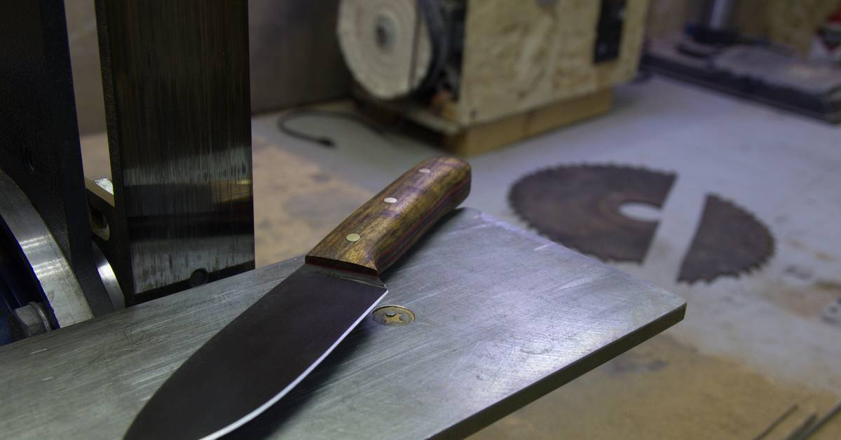 Чтобы проверить самодельный нож из дисковой пилы или другого инструмента на качество после закаливания, необходимо с помощью напильника сделать несколько движений по лезвию. Если закалка прошла успешно, напильник будет легко скользить. Если же изделие липнет к напильнику, а кромка лезвия сгибается, закалка выполнена не до конца – в этом случае процедуру термической обработки придется повторить.