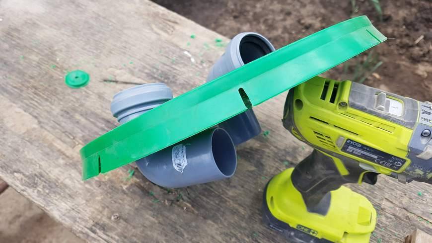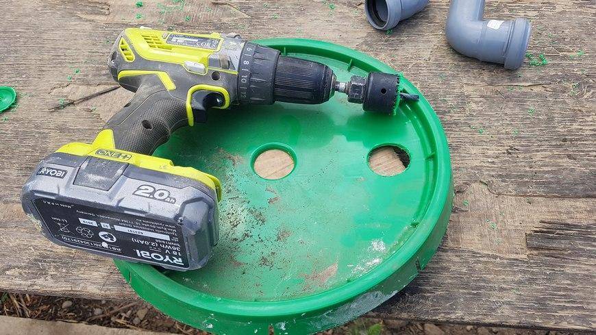 Первым делом по центру крышки ведра высверливаете или аккуратно вырезаете сквозное отверстие под трубку.