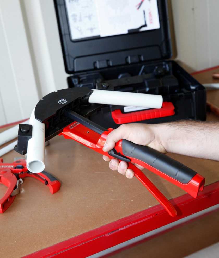- гидравлические — по конструкции схожи с ручным оборудованием, однако могут выполнятся и в стационарной конфигурации, укомплектованы гидравлическим усилителем, который позволяет без использования значительных усилий обрабатывать трубы диаметром до 20 мм;