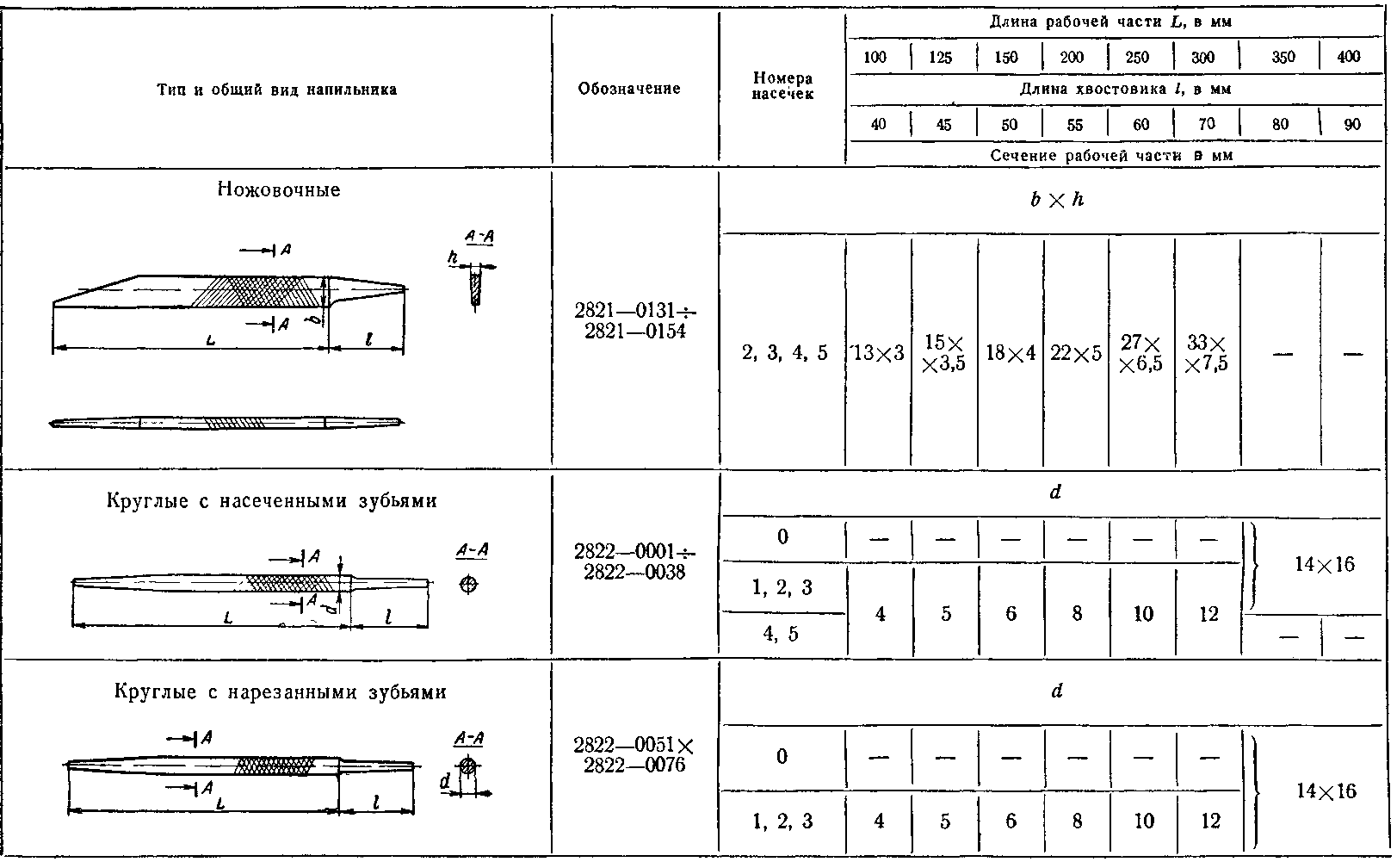 ГОСТ 1465–59 регламентирует шесть номеров насечек: