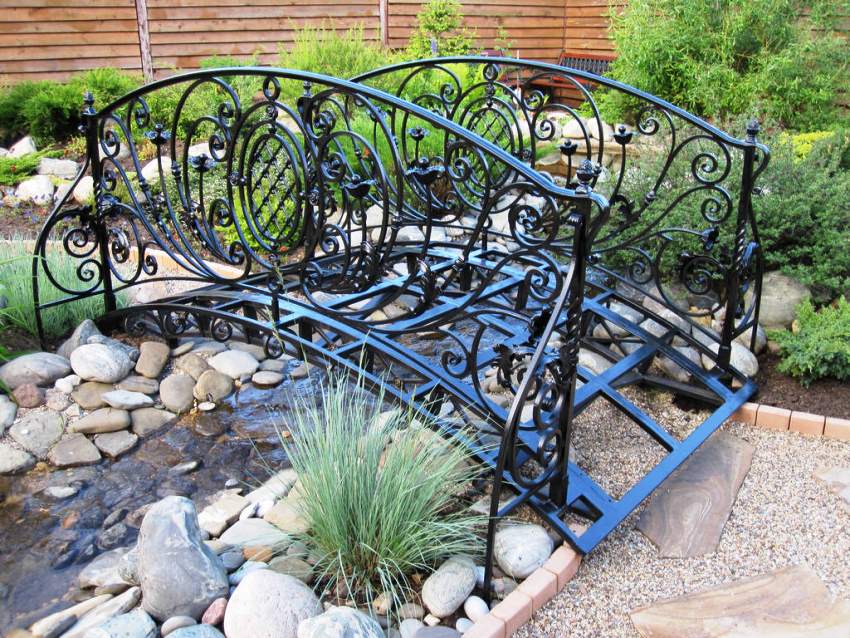 Элементы ковки можно встретить в различных предметах обстановки. От наружной части дома до мебели, используемой в интерьере, и функциональных предметов. Кованые мостики в саду создадут комфорт и уют. Забор с металлическими коваными вставками не просто станет элегантным украшением вашего участка, но и послужит защитой на несколько десятилетий. Ворота, уличные фонари, мангалы, перила, калитки, решетки для растений…
