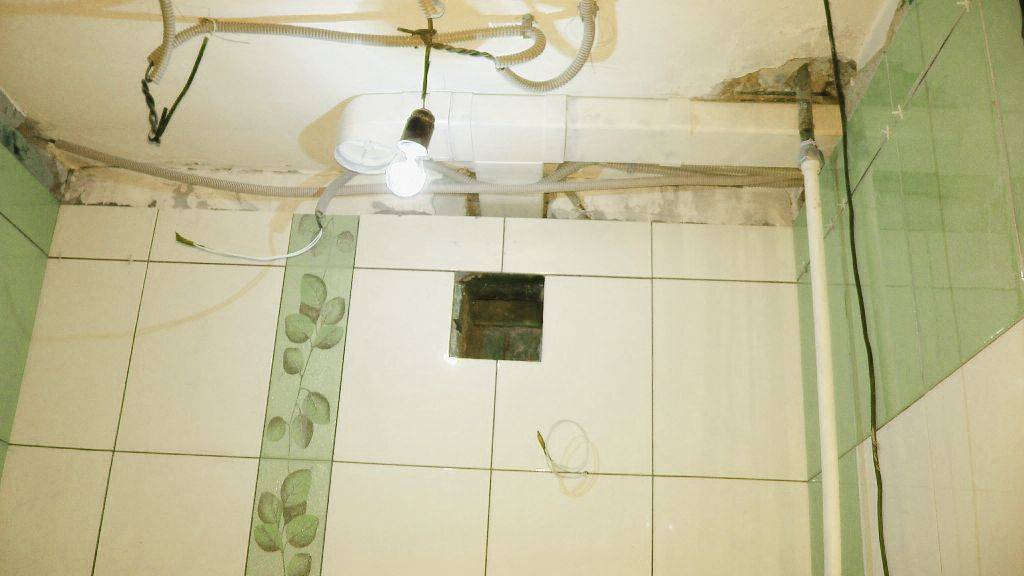 При раздельных помещениях ванной и туалета есть смысл устроить общую вытяжку. В таких случаях воздуховод прокладывается под потолком, ближе к основному вентиляционному каналу в доме. При прокладке электропроводки для подключения вентилятора следует помнить о надлежащей изоляции проводов, учитывая повышенную влажность в помещении.