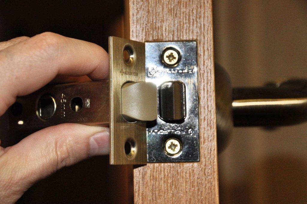 - При установке замка, наблюдается его свободный ход и люфт – если проточка оказалась больших габаритов, чем размеры ригеля запирающего механизма, необходимо установить распирающие подкладки их дерева или пластика в тело выборки.