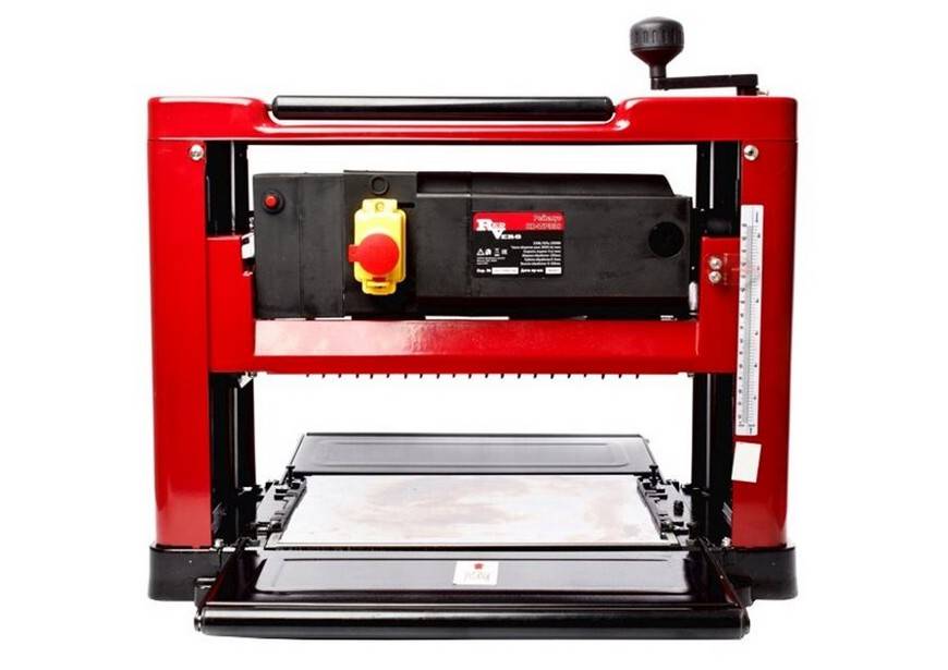 - Независимо от производителя, каждый рейсмусовый станок укомплектован роликом с режущими ножами, крышкой, переключателем подачи и удобным столом.