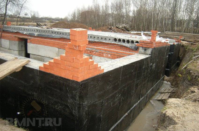При неглубоком залегании грунтовых вод необходимо организовывать гидроизоляцию фундамента. Ее выполняют одним из следующих способов: