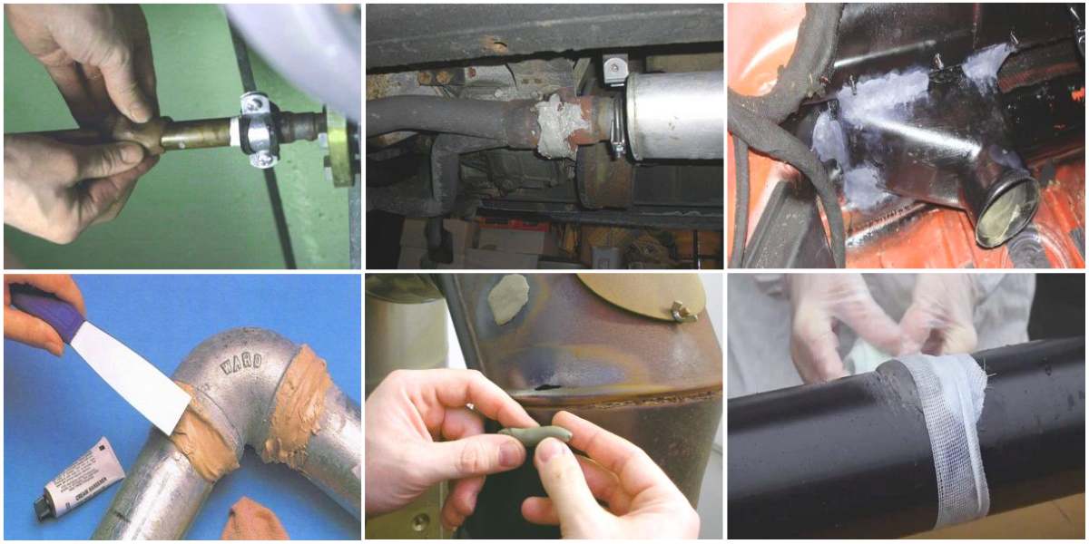 Для ремонта глушителя надо выбрать высокотемпературную марку. Если в инструкции указана комнатная температура применения, то для начала работ ремонта следует дождаться остывания детали.