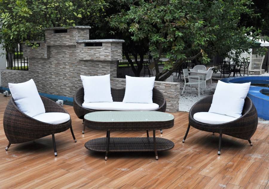 В последнем случае площадка выстраивается как своеобразное «открытое помещение». Наружное ограждение заменяют всевозможные тканевые декоративные занавесы. Или же их обозначают оригинальными решетками с навешанными растениями из семейства вьюнов.