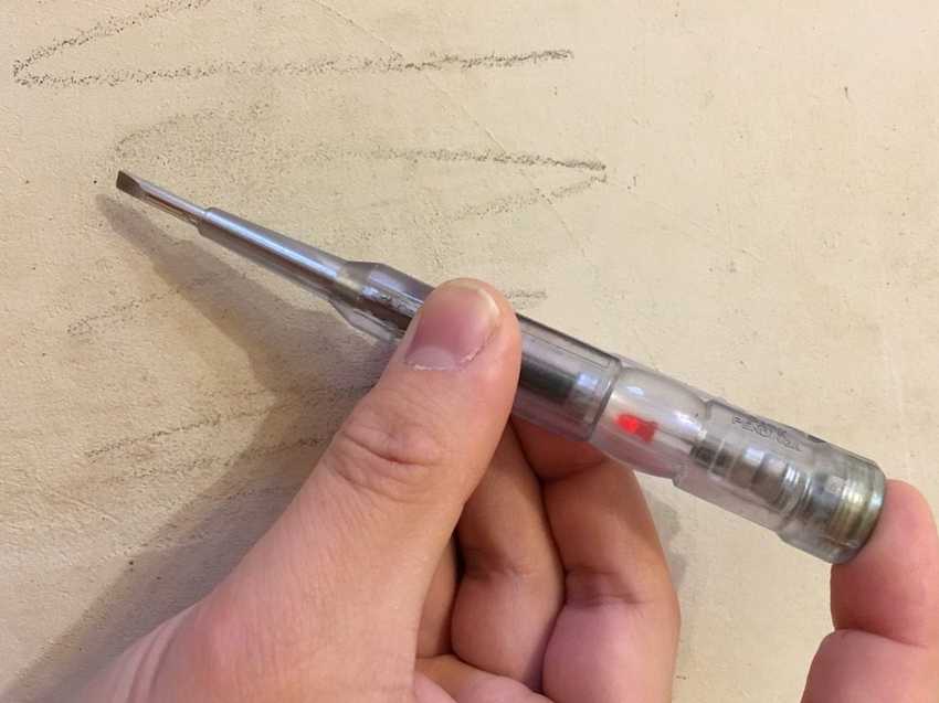 Если оборванный провод подключен к фазе, то при проведении жала вдоль места его размещения и при удержании рукой верхней части отвертки лампочка будет светиться. После обрыва свечение исчезнет.