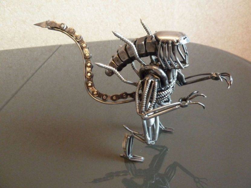 На этот вопрос ответить однозначно нельзя. Кто-то, увидев в одном месте случайно оказавшиеся детали, представляет, как они будут сочетаться вместе, если их объединить в общую композицию. Другой целенаправленно едет на пункт приема металлолома и бродит вокруг гор этого хлама в поисках подходящей детали для выбранной скульптуры.