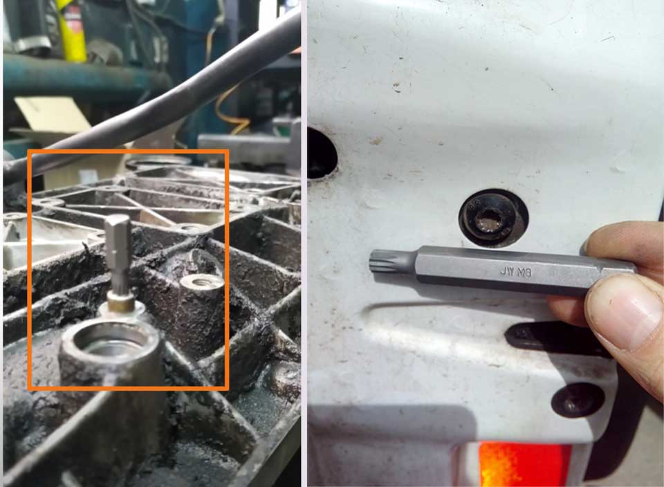 При повреждении граней нужно действовать таким же образом, как и в случае с простыми болтами. Разница заключается только в том, что демонтаж выполняется при помощи специальных ключей с гранями характерной формы – шестигранника или звездочки.
