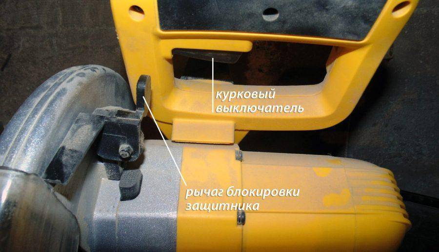 - узел регулировки угла наклона диска, позволяющий поворачивать режущую головку инструмента влево от оператора на любой угол до