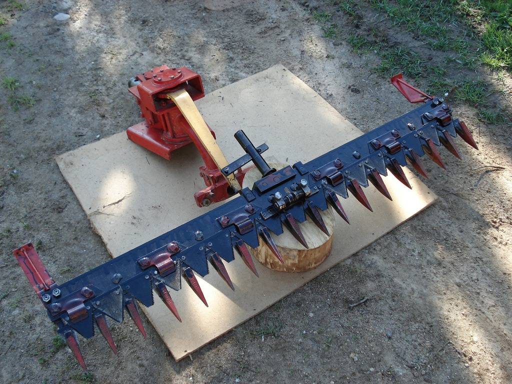 Часто бывает, что по каким-либо причинам у производителя в продаже нет специальной косилки, конкретно под эту модель, либо же, что она не устраивает по своим характеристикам. В таком случае нетрудно поработать над самодельным вариантом. Полное производство на базе своего хозяйства будет продемонстрировано на примере сегментной вариации.