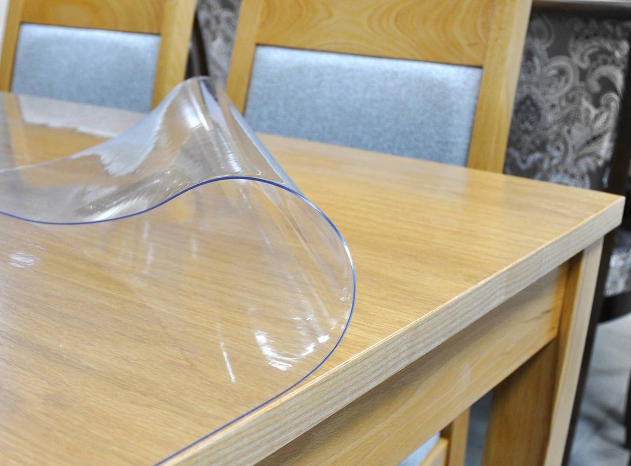 Достаточно часто хозяева кафе и ресторанов выбирают такие скатерти для защиты столов, особенно это важно для мебели, произведённой из древесины. Прозрачная скатерть “мягкое стекло” на столе не скроет древесной фактуры и вместе с тем сможет надежно защитить поверхность столешницы