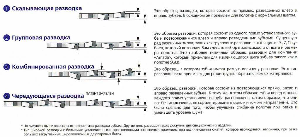 Разводка — это такой процесс, в результате которого зубья ленточной пилы отгибаются в разные стороны. Четные зубья отгибают в одну сторону, нечетные — в другую.