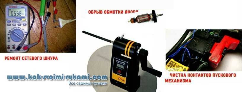 Вооружившись мультиметром, можно проверить обмотки медного проводника, и если будет определено межвитковое замыкание, то придётся заменить якорь на новый. Нелишним будет проверить, не повреждена ли изоляция, и если такая проблема выявлена, то устранить её.