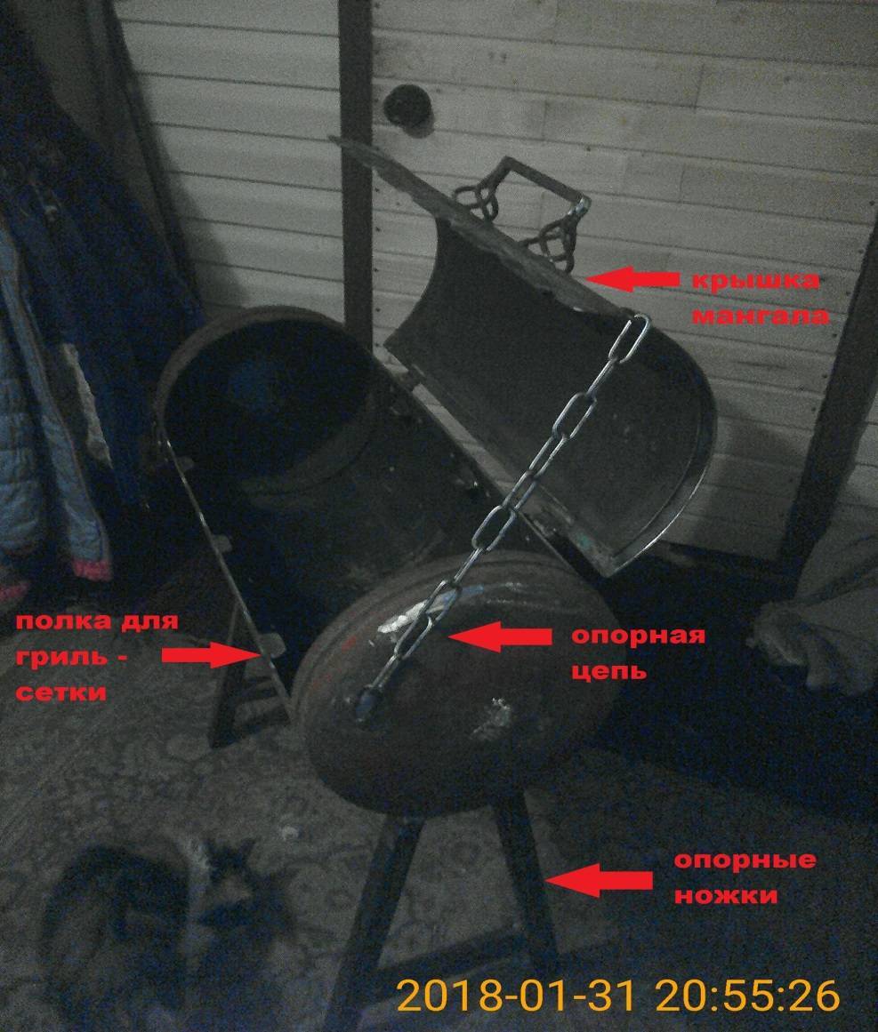 Мангал из бочки с крышкой. Изготовление до мелочей совпадает с процессом при использовании газового баллона