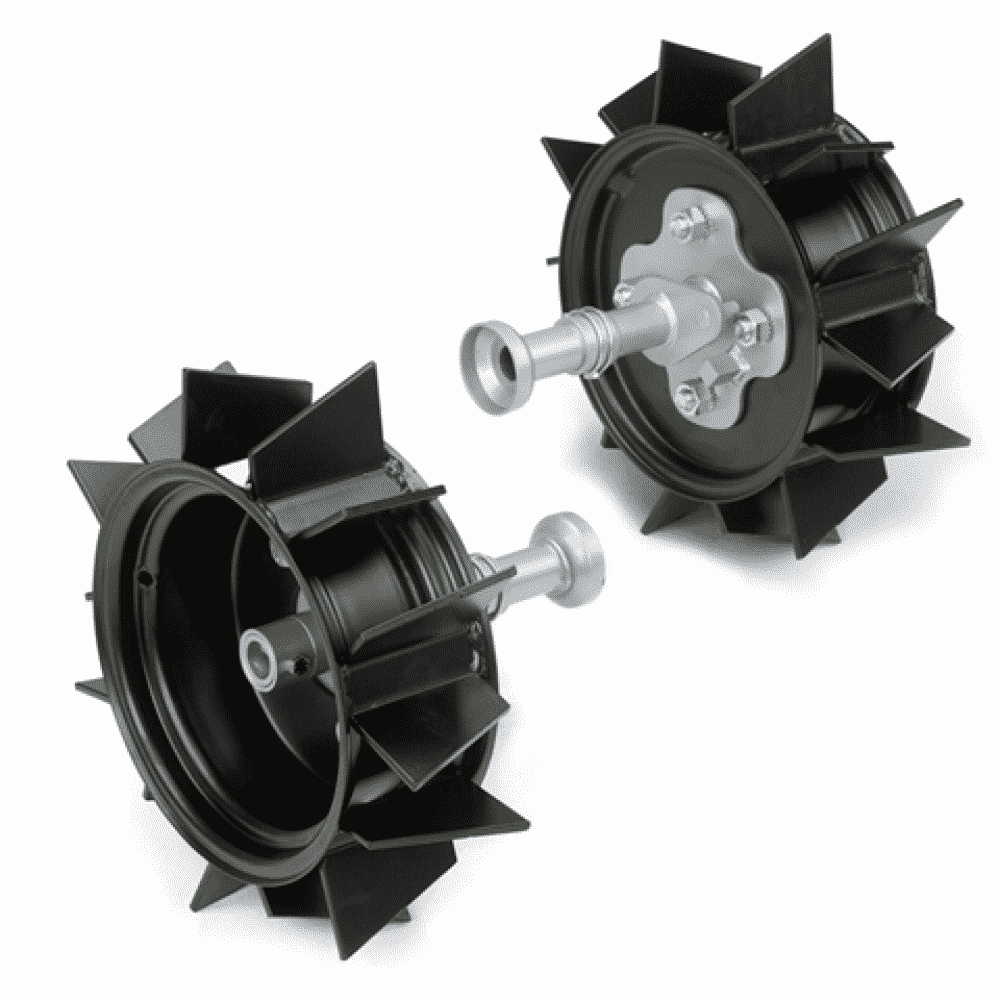 - Металлические насадки, которые крепятся поверх колес мотоблока. Довольно редко используется, так как требуются дополнительные утяжелители для качественного рыхления грунта.
