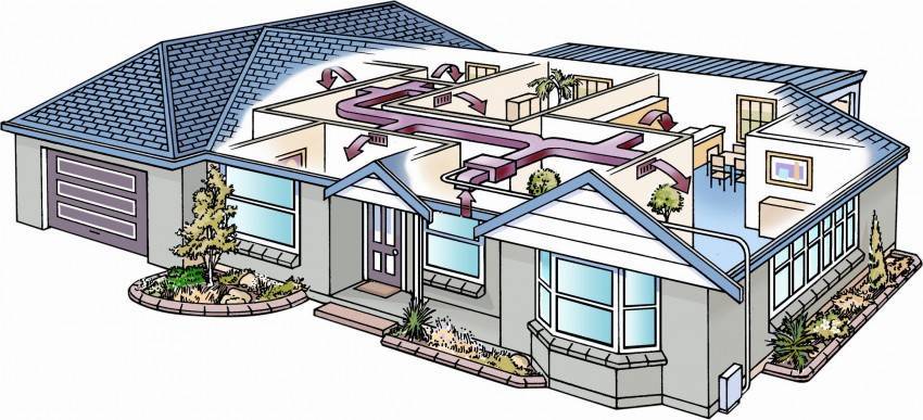 При стандартном проектировании в планировку могут включаться такие системы, которые обеспечат нормальный уровень воздухообменных процессов, для создания и поддержания комфортного микроклимата: