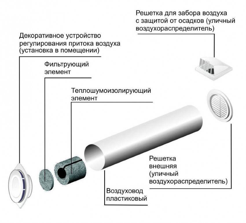 Отработанный воздух выводится с помощью типовых воздуховодов и подоконных отдушин. Проще говоря, нагнетение воздуха внутрь обеспечивается механически (принудительно), а наружу он выводится естественным способом.