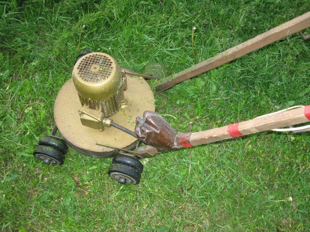 Самый главный вопрос — где взять двигатель, чтобы собрать газонокосилку. Подойдет фактически любой исправный двигатель от старой бытовой техники или электроинструмента: дрели, пылесоса, болгарки, бензопилы, даже стиральной машины. Подойдет двигатель мощностью от пятисот ватт, хотя идеальным вариантом стала бы мощность в 1 киловатт и больше — это позволит работать на меньших оборотах двигателя и реже затачивать ножи. В любом случае подбор двигателя взаимосвязан с диаметром ножа и общими размерами газонокосилки. Вкратце — чем большею площадь должна захватить самодельная газонокосилка за один раз — тем мощнее должен быть двигатель.