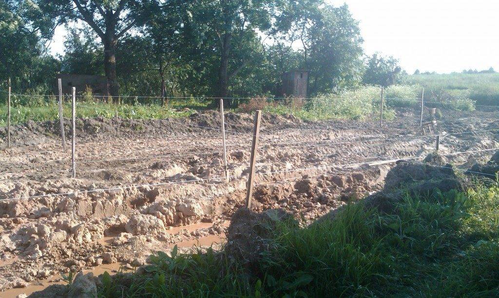 В самой нижней точке пятна застройки нужно будет обустроить дренажную систему. В этом месте траншею следует расширить, чтобы можно было установить дренажную трубу.