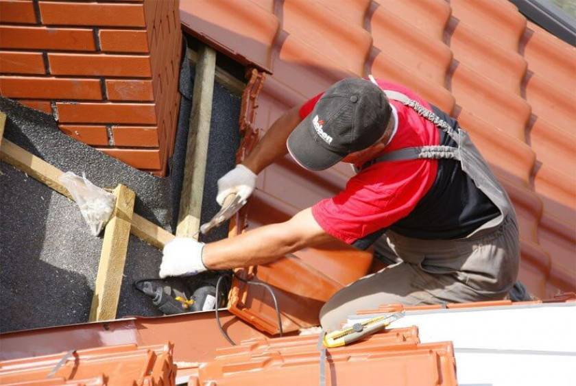 - Между трубой дымохода и краями кровельного покрытия, неустойчивого к возгоранию (мягкая кровля, рубероид) следует оставить зазор 13–25 см, если кровля выполнена из листового металла, натуральной или цементно-песчаной черепицы, шифера, это расстояние можно уменьшить до минимума.