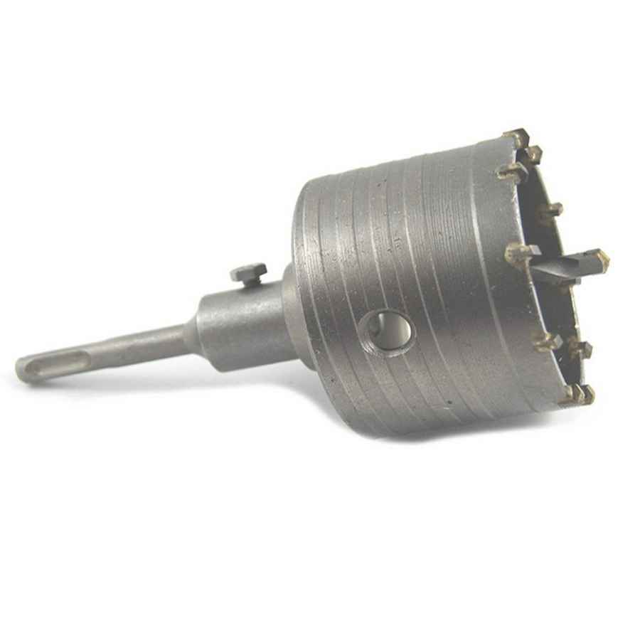 При необходимости сделать большее отверстие применяется корончатый бур, имеющий центрирующее сверло и корону вокруг. Благодаря этому процесс идет достаточно быстро, а нагрузка на перфоратор небольшая.