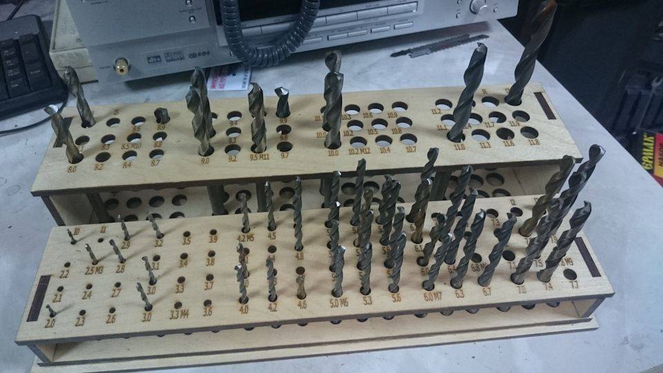 В отношении хранения правила просты: заточенные сверла не должны соприкасаться друг к другу, не должны находиться во влажной или агрессивной среде. Очень удобны для постоянного хранения специальные органайзеры – промышленные или самодельные. При наличии надписей о диаметре поиск нужного инструмента происходит почти мгновенно.