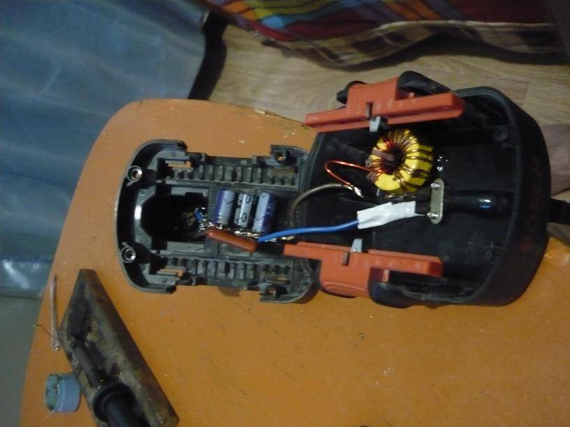 Опытные ремонтники советуют поместить блок питания для шуруповерта внутрь изделия. Так на него не будут попадать пыль, грязь, жидкости, значит, элемент прослужит дольше. На данном этапе нужно вскрыть разборный корпус. Для открытия возьмите перочинный ножик и пройдитесь по шву.
