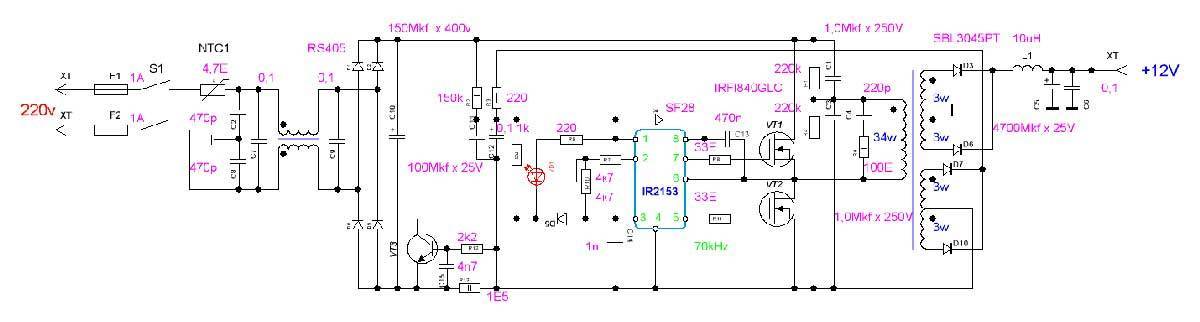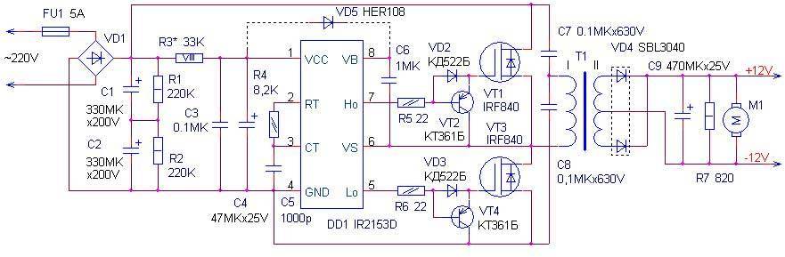 В этих блоках питания входное напряжение сначала выпрямляется, затем преобразуется в высокочастотные импульсы. Их подают через трансформатор либо через обычные резисторы. Второй способ дает возможность получить малогабаритную конструкцию, так как в схеме отсутствует массивный силовой трансформатор.