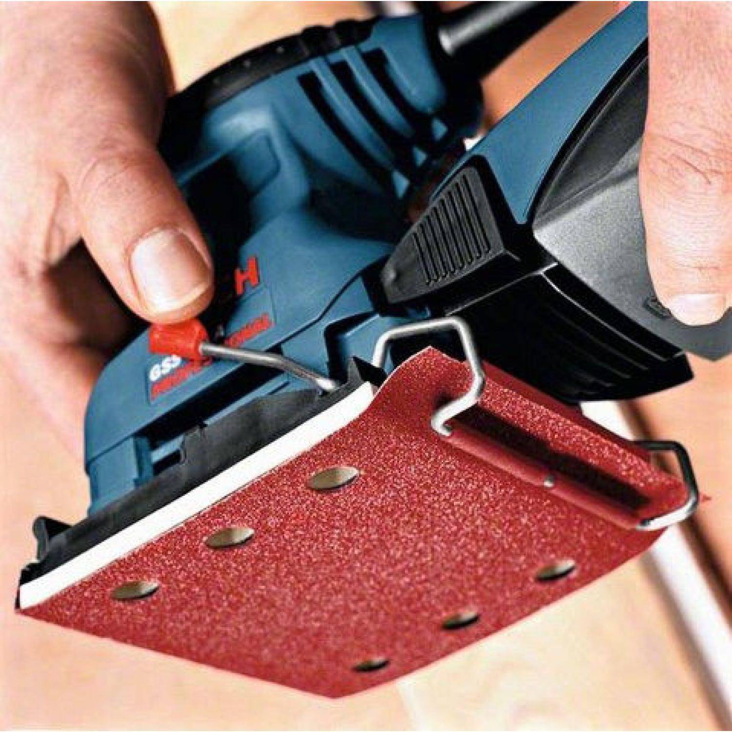 Шлифовальная бумага крепится на зажимах или липучках, сама