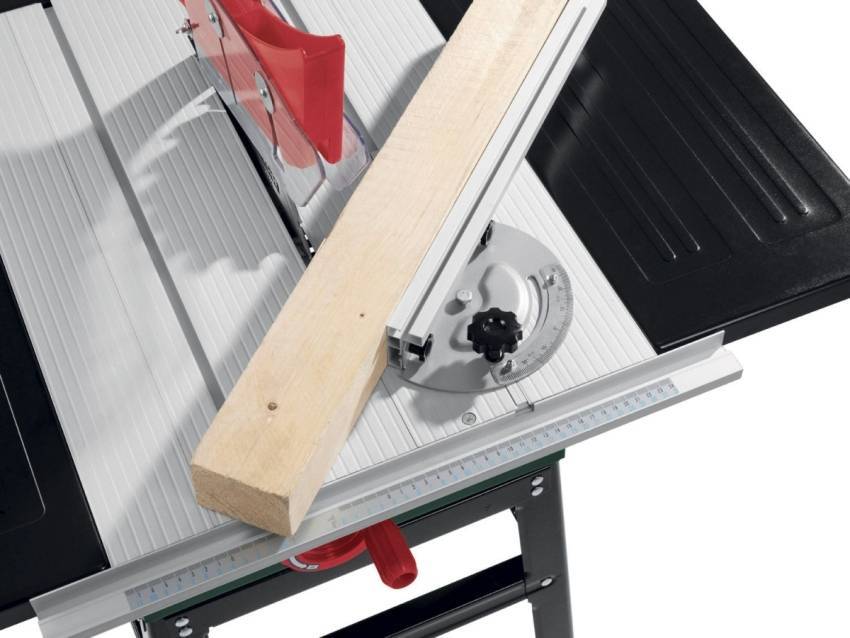 Направляющую планку (параллельный упор) крепят на поверхности рабочего стола на нужном расстоянии от диска. Какое расстояние планки от диска, такой ширины будет отрезана заготовка.