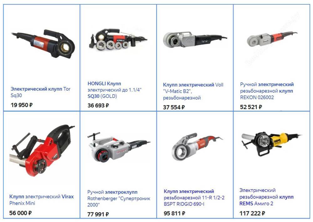 Клуппы трубные продолжают пользоваться популярностью, поэтому производители изготавливают изделия разных видов: