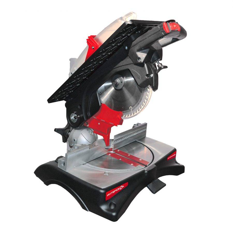 Электропила с режущим элементом 250 мм и мощностью — 1800. Для поддержания чистоты на рабочем месте можно подключить промышленный пылесос, это намного эффективнее обычного мешка для сбора стружек. Поворот стола возможен в обе стороны на 45° для косого реза. Основание и стол изготовлены из алюминия. Имеются специальные зажимы и расширители для фиксации.