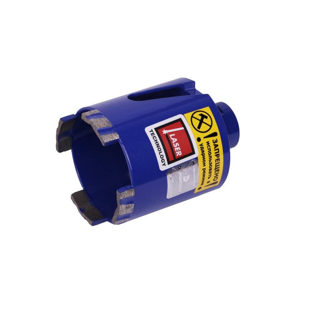 Алмазные коронки для сверления бетона представляют собой отрез трубы, материалом для изготовления которой выступает прочная инструментальная сталь. Цилиндр имеет большое разнообразие длин и диаметров. На одном конце отреза находятся прочные режущие элементы, на противоположном – хвостовик, предназначенный для укрепления цилиндра в патроне инструмента, выступающего в роли привода.