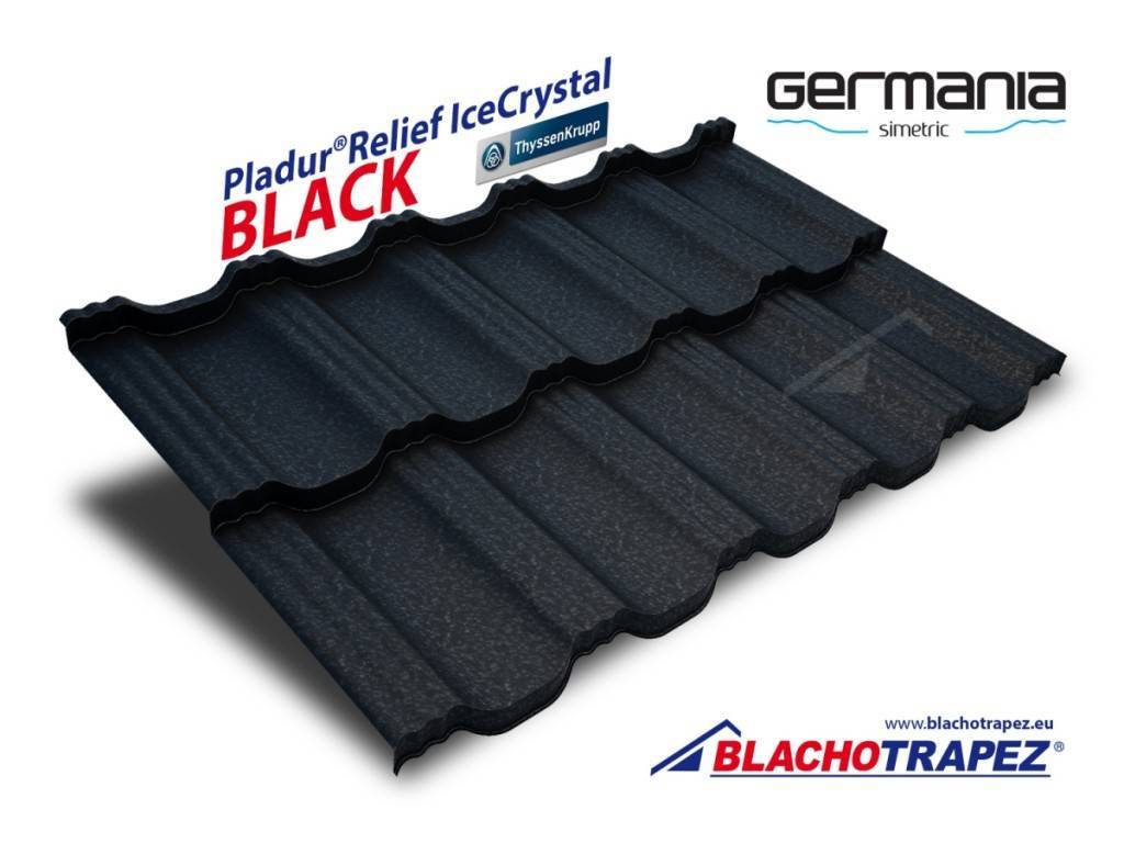 Модульная металлочерепица Germania в покрытии Ice Crystal, цвет 9005 (черный)