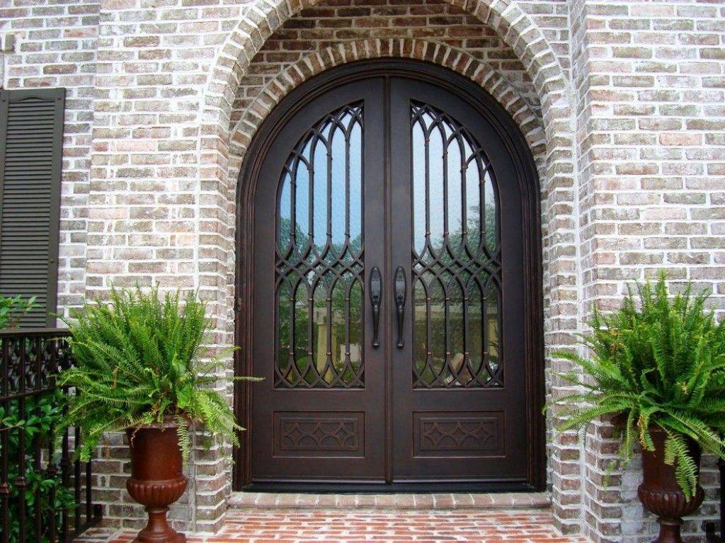 Арочные кованые двери со стеклом обладают наиболее интересным и запоминающимся дизайном. Они отличаются изяществом. Сооружения подобного типа подходят для музеев, театров, библиотек и других культурно-просветительских учреждений.