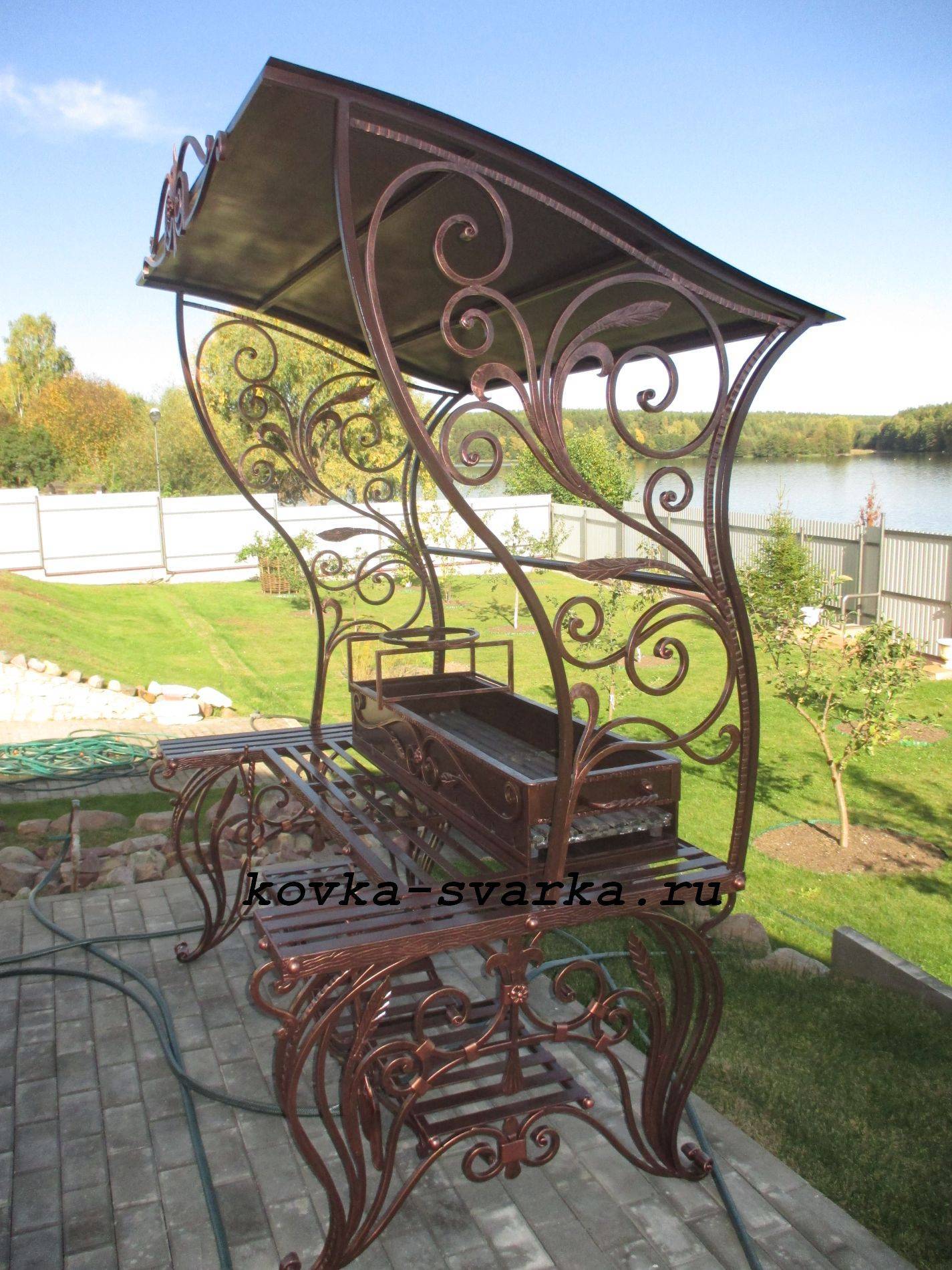 Кованые навесы дополняют не только здания, но и другие изделия из металла:
