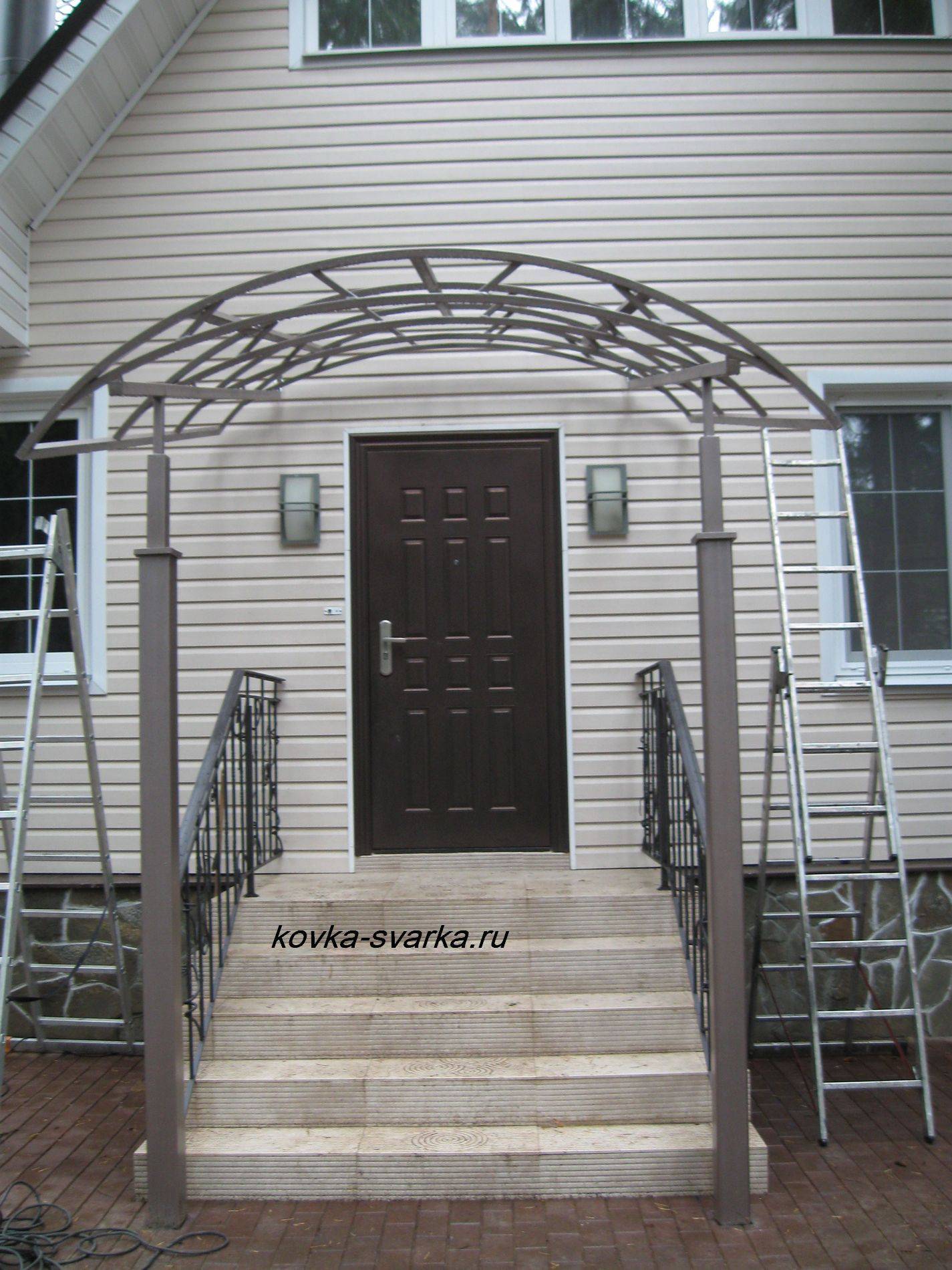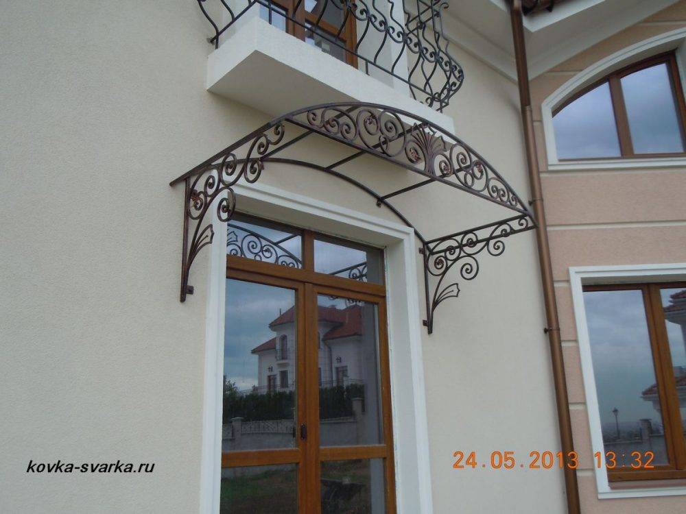 Обратите внимание, что конструкция в этом случае крепится на обе поверхности стены:. Вариант короткого и лаконичного кованого козырька над входом в дом, конструкция легкая и простая, вполне доступна для самостоятельного изготовления, фото ниже: