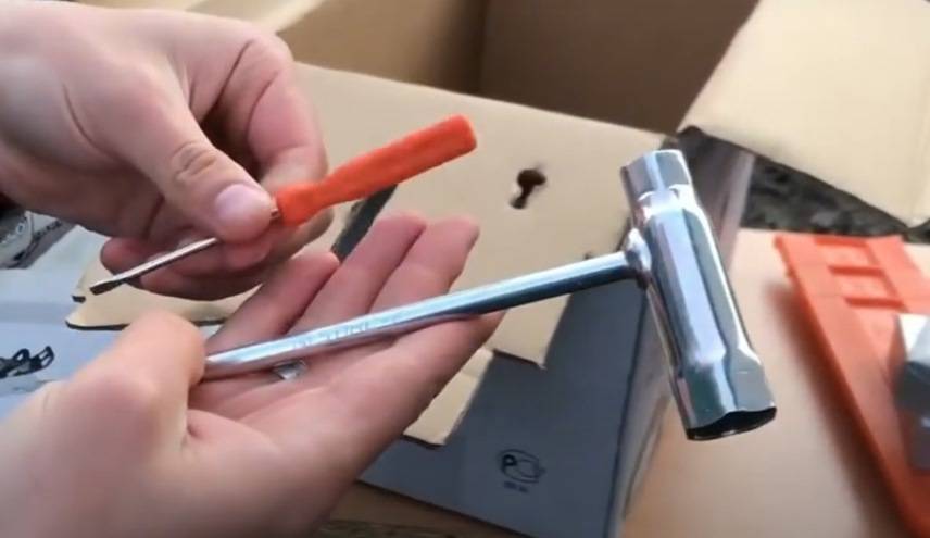 Если же бензопила оригинальная, то к ней прилагаются только два инструмента. Но они – и это визуально заметно – очень высокого качества. Это: