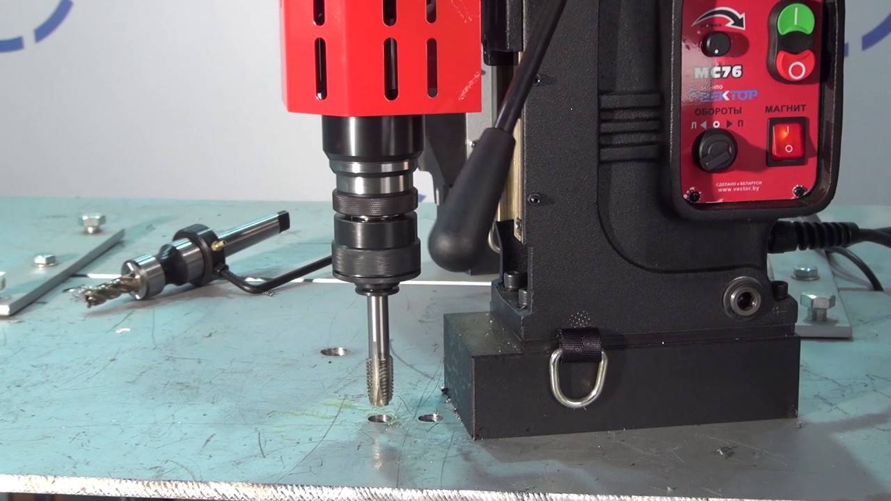 Машинные и гаечные метчики могут быть очень похожи. У них длинный хвостовик, позволяющий за один цикл обрабатывать до десяти и более деталей. Собираются они на корпусе устройства и по мере заполнения снимаются за один раз. В этом случае удобно использовать специальное приспособление для установки инструмента. Дома можно эту операцию делать дрелью быстрозажимным патроном.
