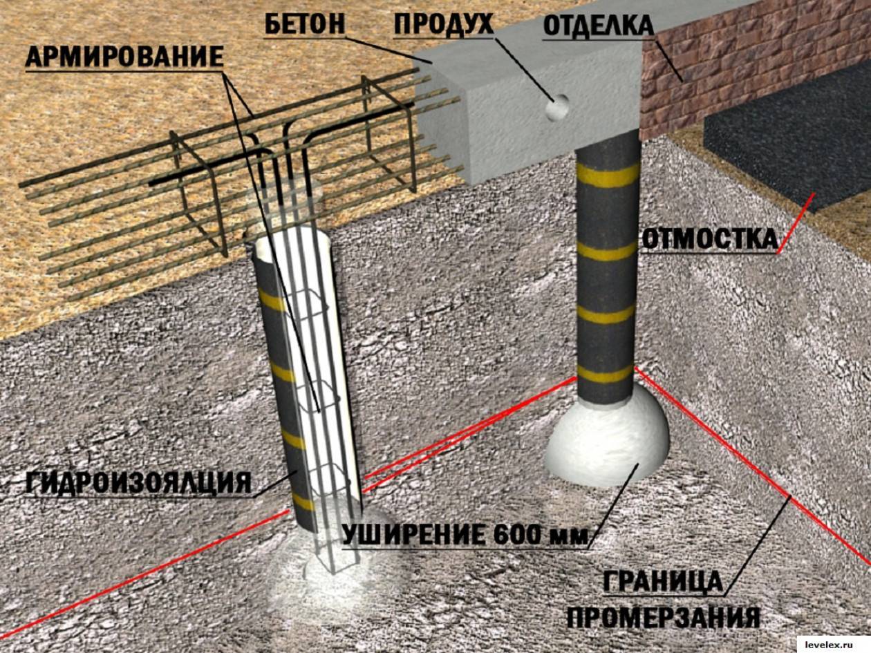 В противном случае опорный элемент будут подвержен сезонным воздействиям грунтам.
