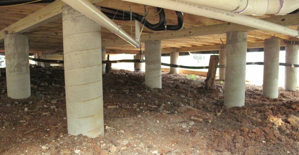 Особую осторожность стоит соблюдать при установке данного фундамента на сильно обводненных грунтах, на которых грунтовые воды имеют различные уровни, зависящие от сезонов года. Если необходимо построить здание на подобном участке земли, перед строительством нужно провести пробное бурение, а глубина погружения свай должна быть максимальной