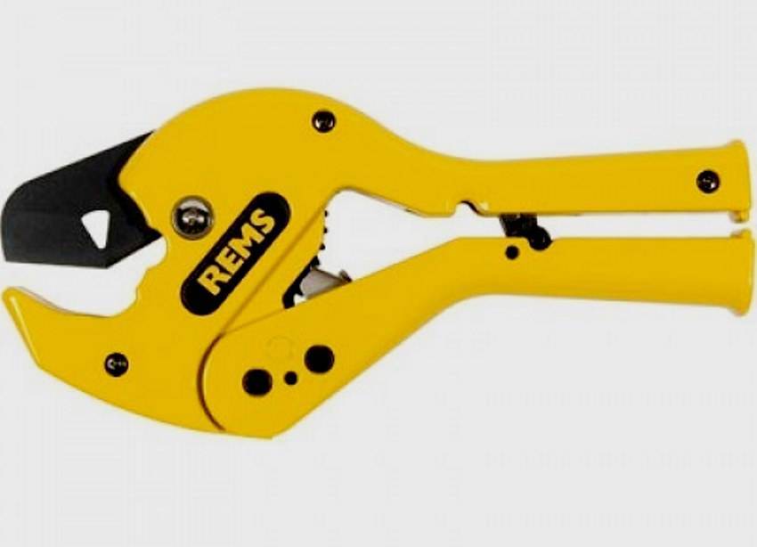 Ножницы для пропиленовых труб и всех видов пластика немецкой модели REMS ROS P 42P применяют для резания диаметров от 1 мм до 42 мм. Получается качественный срез, при этом удаляется стружка и заусеницы. В них используется храповый механизм, позволяющий резать изделия с толстыми стенками, не прилагая значительный усилия. Единственным недостатком является их высокая стоимость.